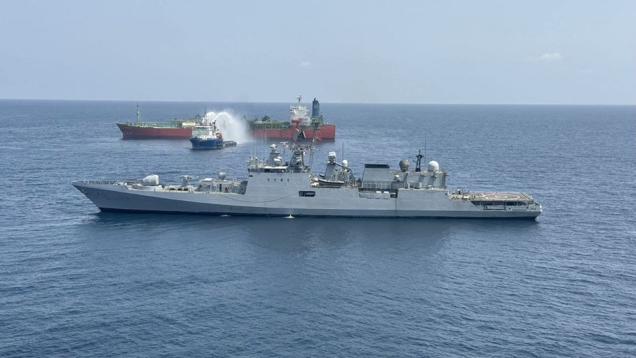 Currently, the Indian warship INS Trikand has taken charge of firefighting operations and has successfully extinguished the blaze aboard the Falcon.