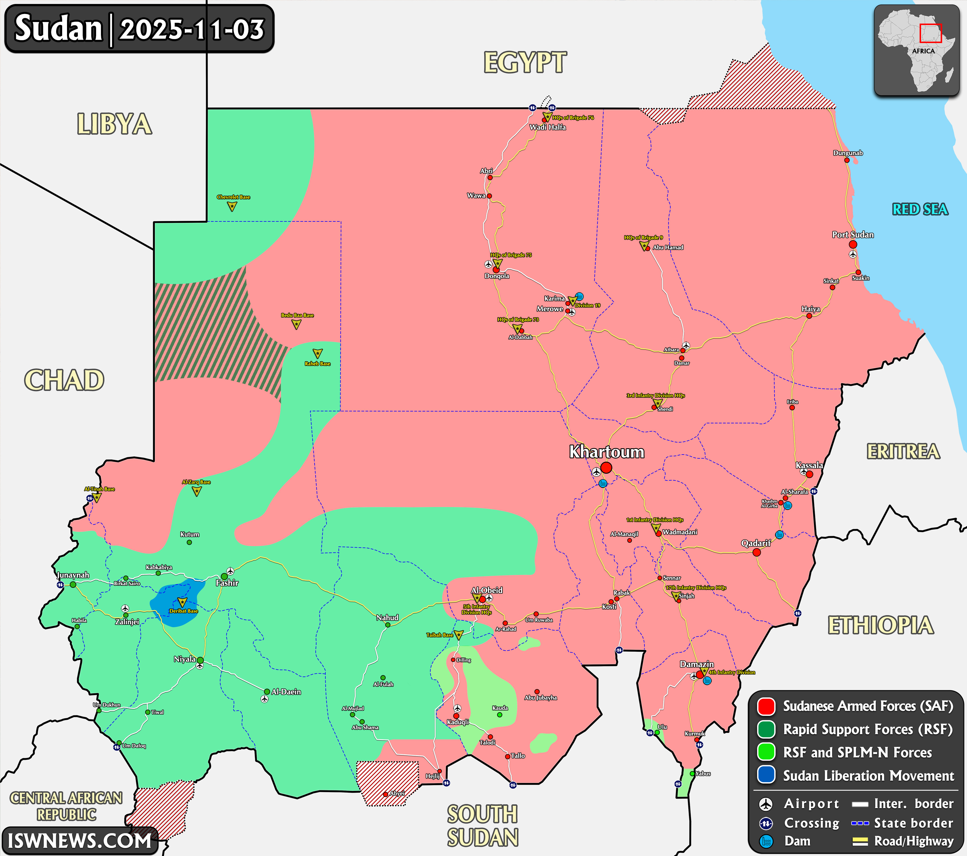 On the ground, the latest battles center around Al-Fashir, the capital of North Darfur in southwestern Sudan, which was recently captured by RSF forces after months of siege. Al-Fashir was the last stronghold of the Sudanese Armed Forces (SAF) in Darfur. Over the past two years, RSF repeatedly attempted to seize the city but were repelled each time. The final takeover and the videos released from the scene point to a brutal massacre. It is estimated that at least 2,500 civilians were executed or killed by RSF fighters during the capture of Al-Fashir.