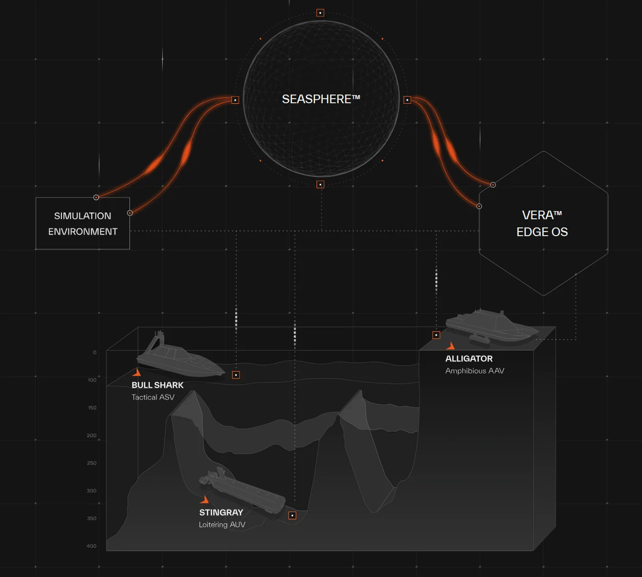 Skana’s portfolio consists of autonomous maritime platforms integrated with SeaSphere software, enabling mission planning and distributed, network‑centric execution. These missions typically cover surveillance, reconnaissance, and combat operations. The company’s offerings are built on a unified maritime autonomy system, with three flagship platforms: Bull Shark (autonomous surface vessel), Stingray (autonomous underwater vehicle), and Alligator (autonomous amphibious craft).