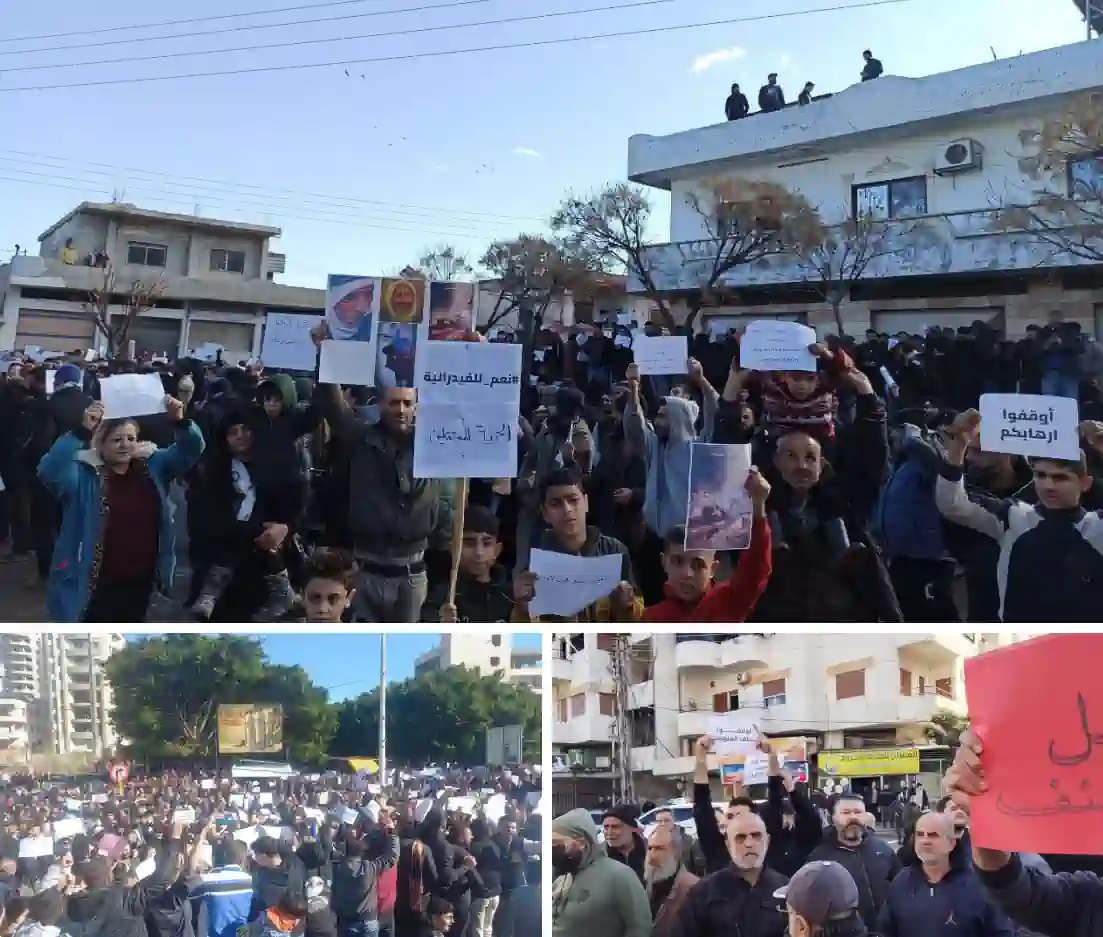 In response to this call, residents of Jableh and al‑Qardaha (Latakia province), al‑Daliyeh and Salhab (Hama province), Tartus, Safita, Banias, and al‑Sheikh Badr (Tartus province) took to the streets. Videos circulating on social media show that security forces of the al‑Joulani government opened fire on protesters in some areas, injuring several people who were later transferred to Tishreen Hospital in Latakia.